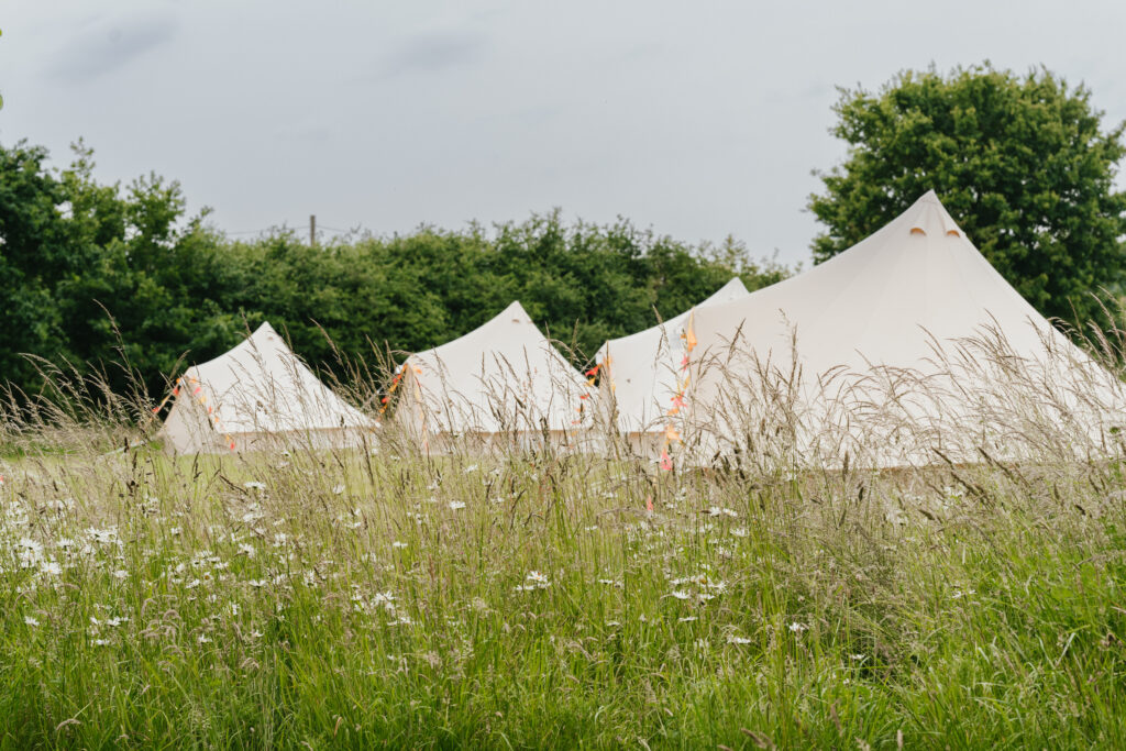 We love to wave our couples and their guests off at the end of the night as they meander over the bridge into the field to get all tucked up in their cosy cosy tents. Always a little bit jealous of that short commute home. Perfect festival vibes, in a luxury glamping kind of way – not a sweaty too hot/too cold eurohike tent in site.