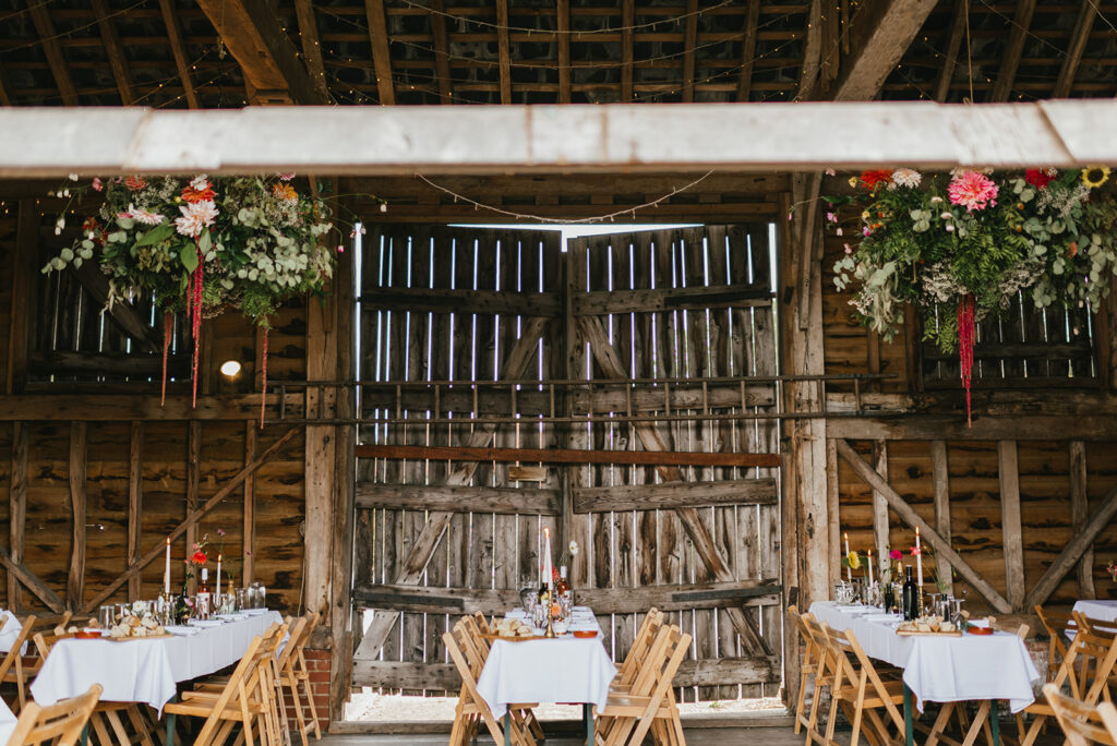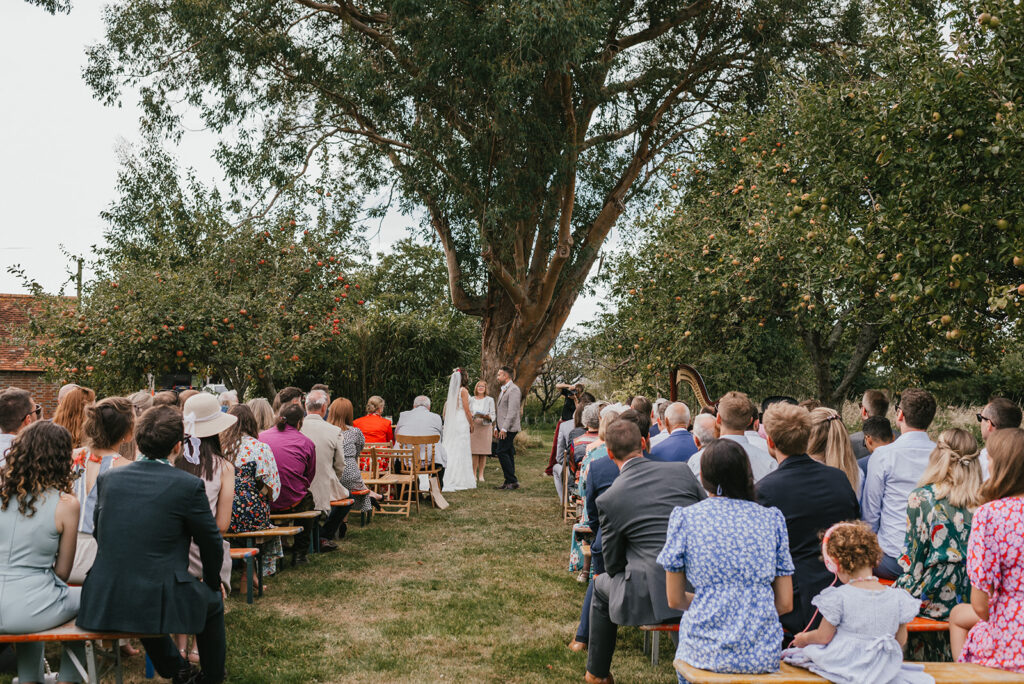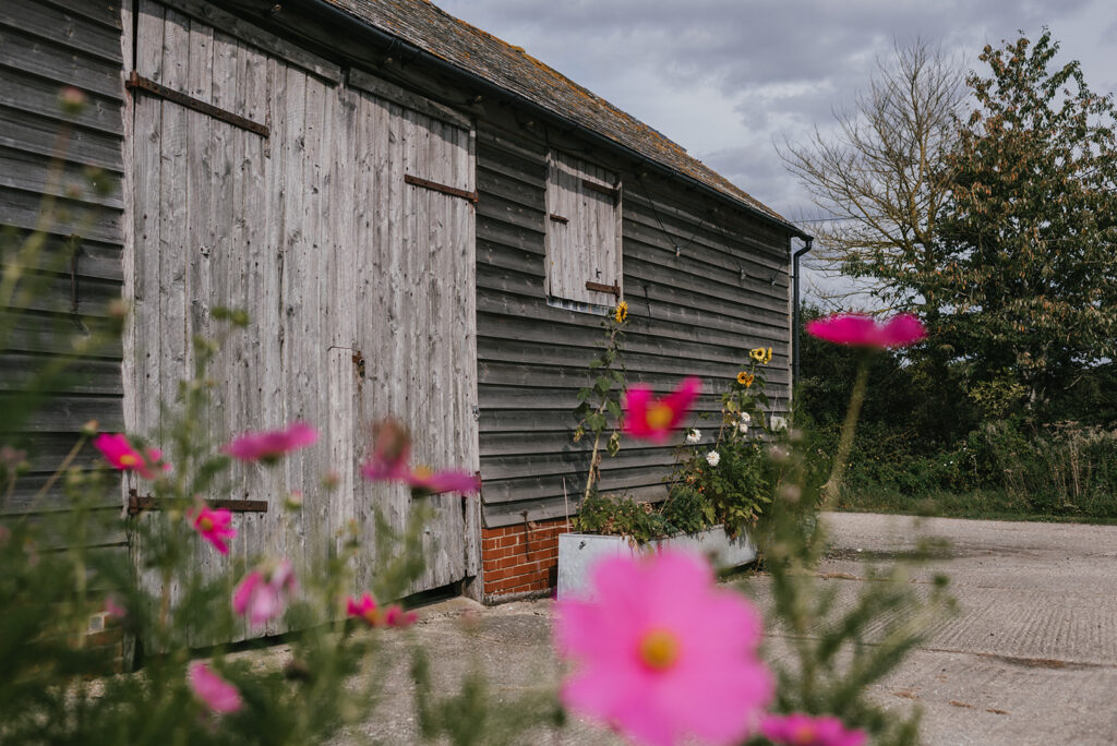 It was a perfect late summer day for a ceremony in The Orchard, they spent the day outside with their guests and the barn doors were flung open into the night as friends played music and DJ’d and their Country and Western Band played and everyone danced the night away. Ginny looked beautiful and fairylike in a very delicate dress with lots of lace, and flowers in her hair. They were such a lovely, smiley couple and we were so pleased to help them celebrate their Wedding Day.