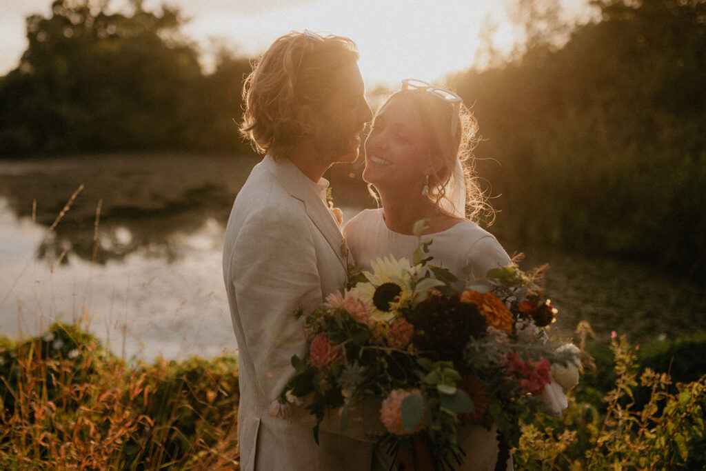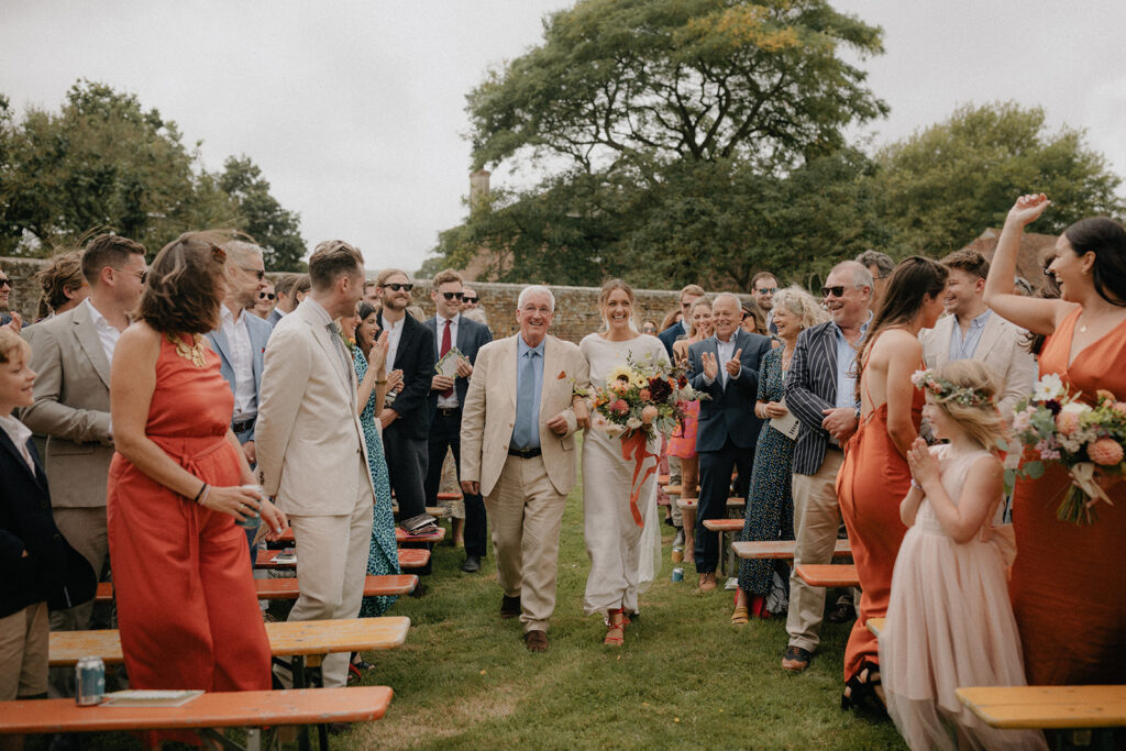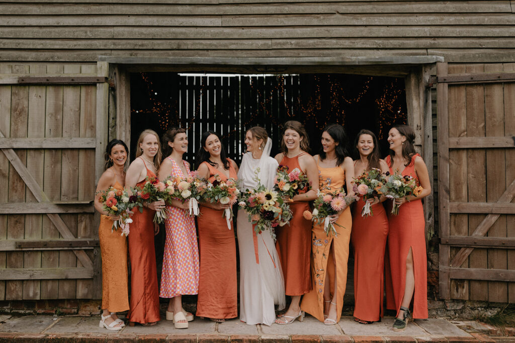 On the day of their wedding, they went running together and probably did some yoga (Vix is really good at it!) and turned up looking particularly cool, calm and beautiful. Vix had a 2 piece instead of a dress – it had lovely sleeves and she had burnt orange silk ribbon trailing from her bouquet. Sam looked perfectly dressed down in a cream suit and shirt. Coordinated and stylish! A true power couple. The bridesmaids all had tonal lovely oranges. What a beautiful bunch.