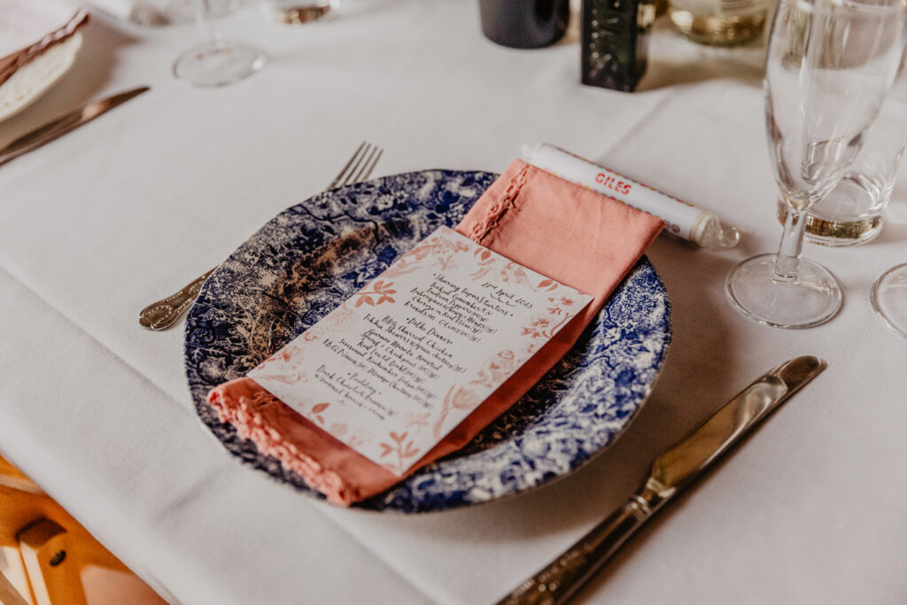 Panetone have announced their colour of the year for 2024, a soft peach shade that is reminding us that warm weather will come back again and it won’t be January forever. Peach and coral tones are a much used colour, a between shade that can tie your pinks with your whites, or take the edge off an orange. Bring in the tone with beautiful flowers, candles, ribbons for you bouquet, our lovely hand died napkins and Ambers Menus.